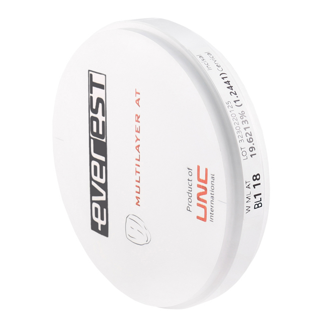 Заготовки из диоксида циркония, стабилизированного иттрием, для стоматологических реставраций по технологии CAD/CAM с принадлежностями: Диск из диоксида циркония Everest Multilayer AT многослойный предварительно окрашенный, диаметр 95 мм, толщина 18 мм, оттенок: BL1, в составе: - Диск одного оттенка в индивидуальной упаковке – 1 шт., - Инструкция по применению (вкладыш) – 1 шт.