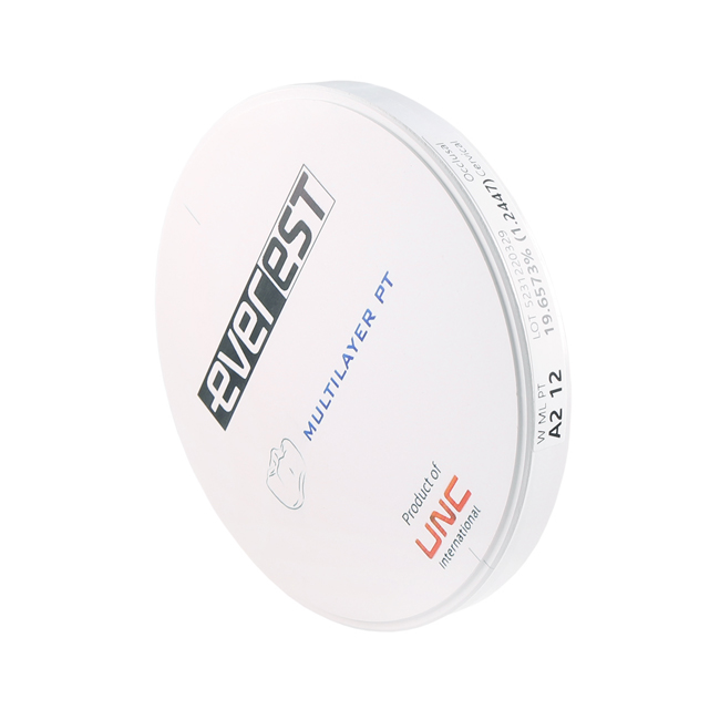 Заготовки из диоксида циркония, стабилизированного иттрием, для стоматологических реставраций по технологии CAD/CAM с принадлежностями: Диск из диоксида циркония Everest Multilayer PT многослойный предварительно окрашенный, диаметр 98 мм, толщина 12 мм, оттенок: A2, в составе: - Диск одного оттенка в индивидуальной упаковке – 1 шт., - Инструкция по применению (вкладыш) – 1 шт.