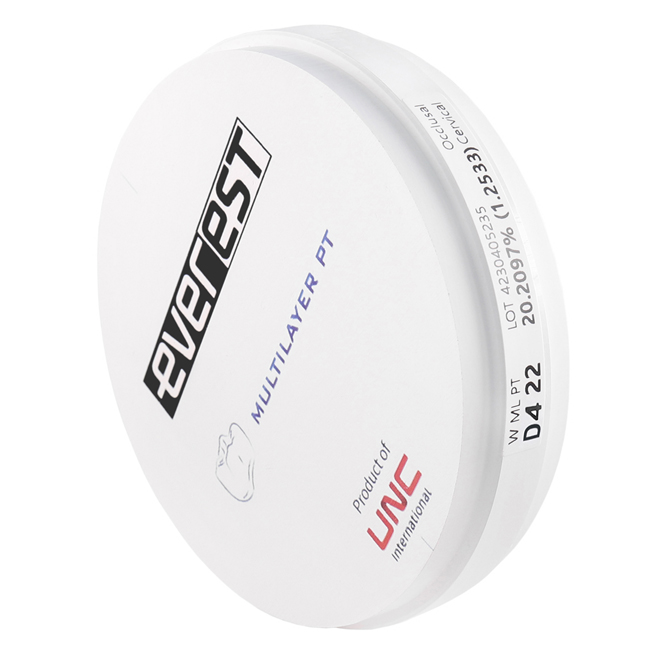 Заготовки из диоксида циркония, стабилизированного иттрием, для стоматологических реставраций по технологии CAD/CAM с принадлежностями: Диск из диоксида циркония Everest Multilayer PT многослойный предварительно окрашенный, диаметр 98 мм, толщина 22 мм, оттенок: D4, в составе: - Диск одного оттенка в индивидуальной упаковке – 1 шт., - Инструкция по применению (вкладыш) – 1 шт.