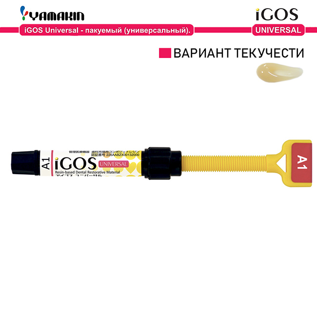 Материал стоматологический пломбировочный «iGOS Universal», цирконосодержащий, светоотверждаемый, композитный, на основе субмикронного керамического кластерного наполнителя, универсальный: iGOS Universal в индивидуальной упаковке, 4г (2 мл), оттенок: А1 - 1шт./уп.