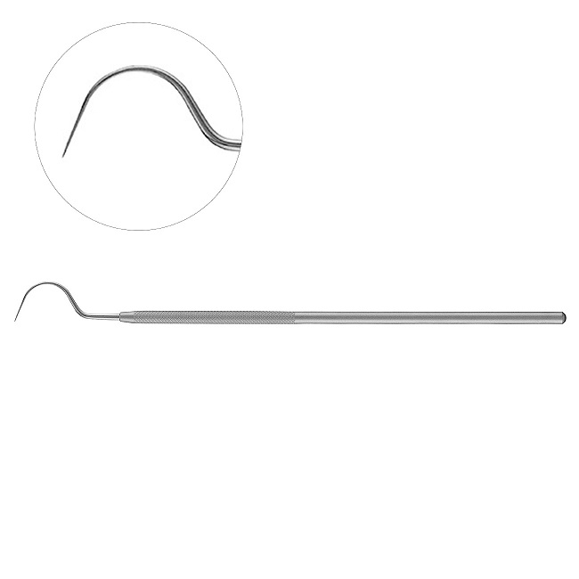 Применяется для диагностики, позволяет определять состояние даже мелкой поверхности зуба по вибрации, передаваемой насадкой. Эффективен для обнаружения поддесневого зубного камня и кариеса, а также для проверки краев протеза, может достигать глубоких карманов на проксимальной поверхности моляров. Автоклавирование при температуре 135 С.